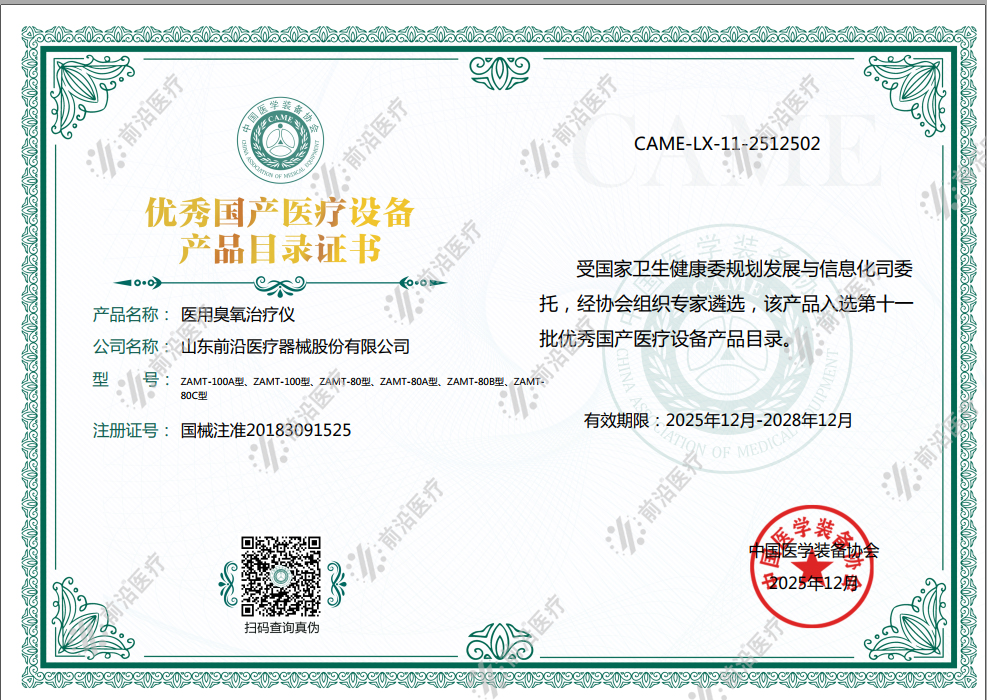 祝賀前沿醫療醫用臭氧治療儀入選《第十一批優秀國產醫療設備產品目錄》